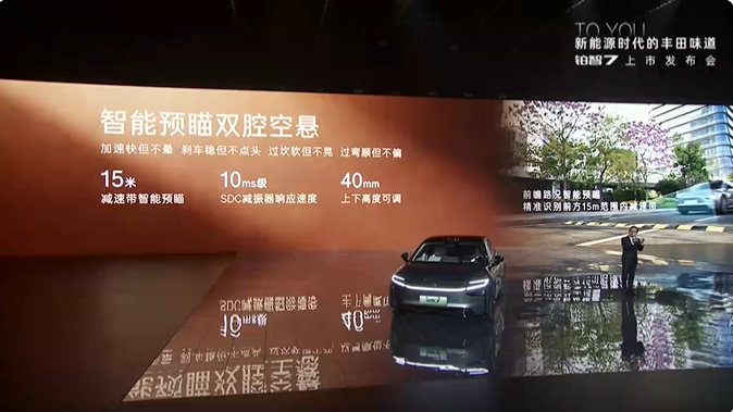 铂智7是丰田首款搭载双腔空气悬架的纯电轿车。