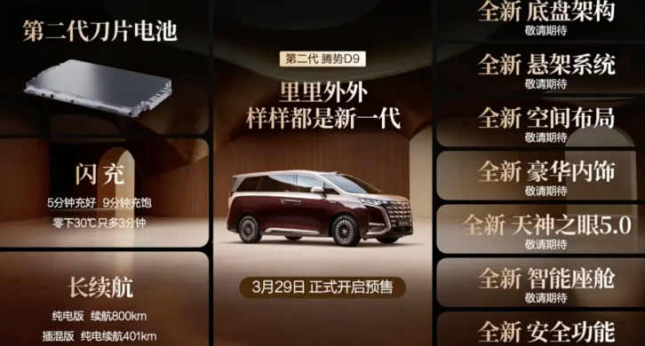 目前新款腾势D9还有不少具体的参数信息没有公布,但从已经公布的官方信息来看,这一次更新换代的重点依然是动力系统,以第二代刀片电池和兆瓦闪充2.0系统为核心,那么新车上市后,前景如何呢?