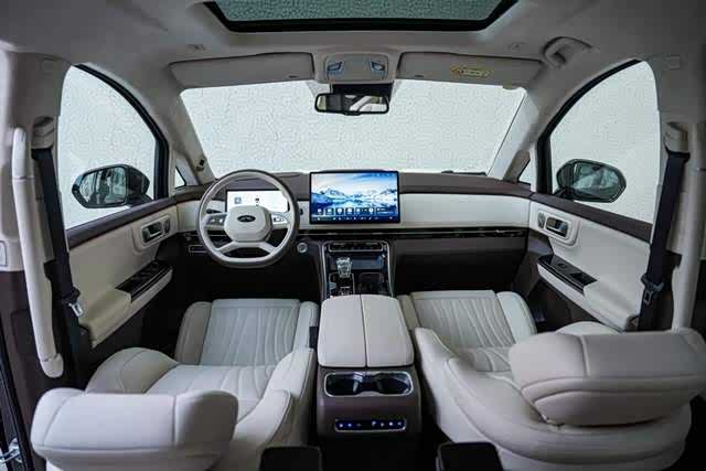 第二排配备了零重力航空座椅,荣获“中汽研舒适之星”权威认证。10层结构+零压海绵,支撑性提升30%,长途疲劳感降低50%,10向电动调节、8点按摩、3档通风加热,可以一键进入零重力模式,并且还带有航空头枕6向调节,5英寸扶手屏以及小桌板+66W快充口。