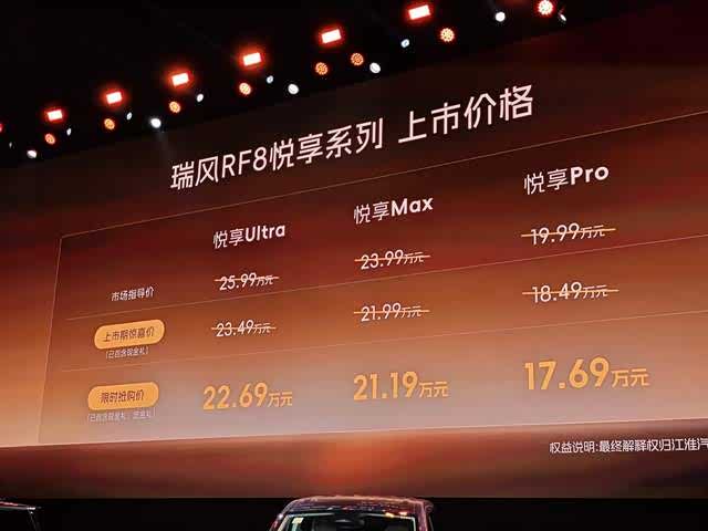 新车共推出3款车型,售价区间为19.99-25.99万元,限时抢购价17.69-22.69。同时,瑞风为首批用户准备了至高价值70888元的7重尊享购车大礼,并为老车主提供免费升级原厂车钥匙或HiCar智慧车生活、1666元升级原厂NVH静音包的双重专属感恩权益。