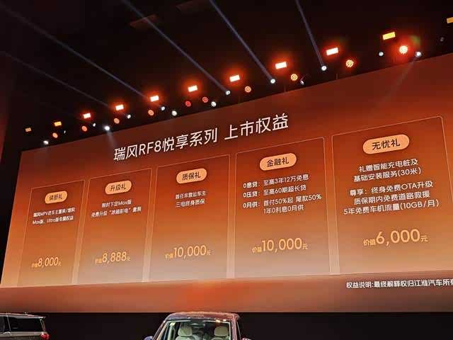 2026年3月28日,瑞风RF8悦享系列正式上市。新车定位为中大型MPV,并采用插电式混合动力,其CLTC纯电续航150km,综合续航超1150km。