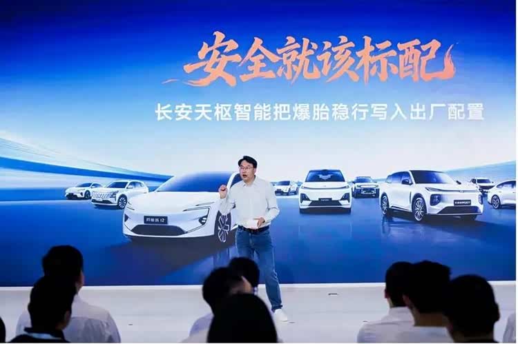 更具里程碑意义的是长安的普惠承诺。当前,爆胎稳行功能多为豪华车选配,用户需额外支付数千元费用。而长安坚信:“安全就不该有高低配,安全就该标配”,在车展发布会上郑重官宣:自2026年5月1日起,所有搭载天枢智能的全新车型和改款车型,包括长安启源、深蓝汽车、阿维塔三大新能源品牌,以及长安汽车的燃油车,均将搭载爆胎稳行功能,不收取任何额外费用。