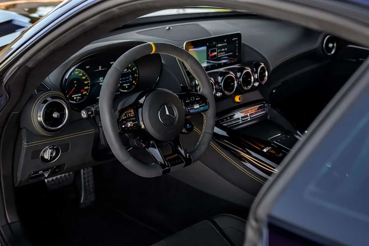 车内部分,配备了带加热功能的AMG座椅,并采用黑色的Nappa皮革和Dinamica合成绒面包裹,并加以黄色缝线的点缀。动力方面,搭载一台4.0升V8双涡轮增压发动机,匹配7速AGM双离合变速箱,最大功率577匹、峰值扭矩700牛·米。二手网站上并未显示当前的售价,你觉得曾经的AMG王者如今会加价多少合适?