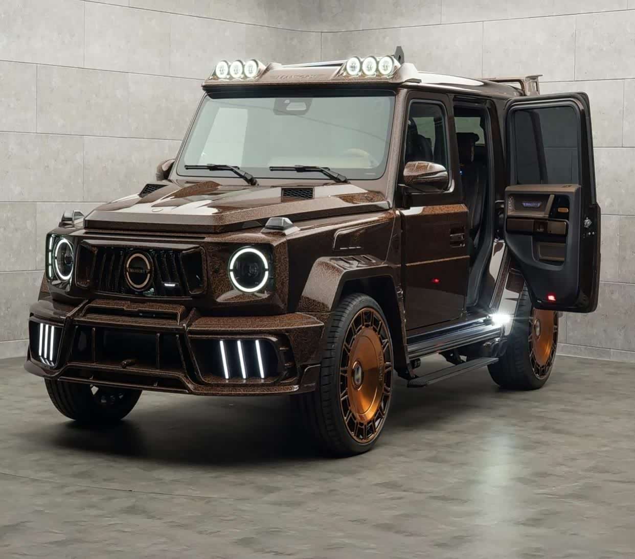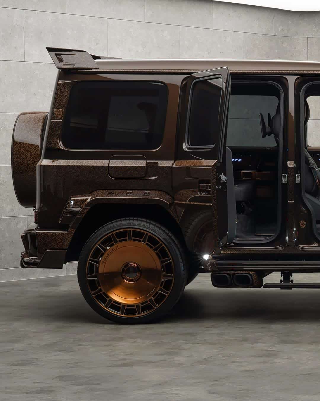 Mansory P820 Linea D'Arabo 是一款独一无二的 Mercedes-AMG G63(参数|询价),融合了令人惊叹的涡轮增压动力、大胆的宽体碳纤维设计以及定制的阿拉伯风格铜色装饰。