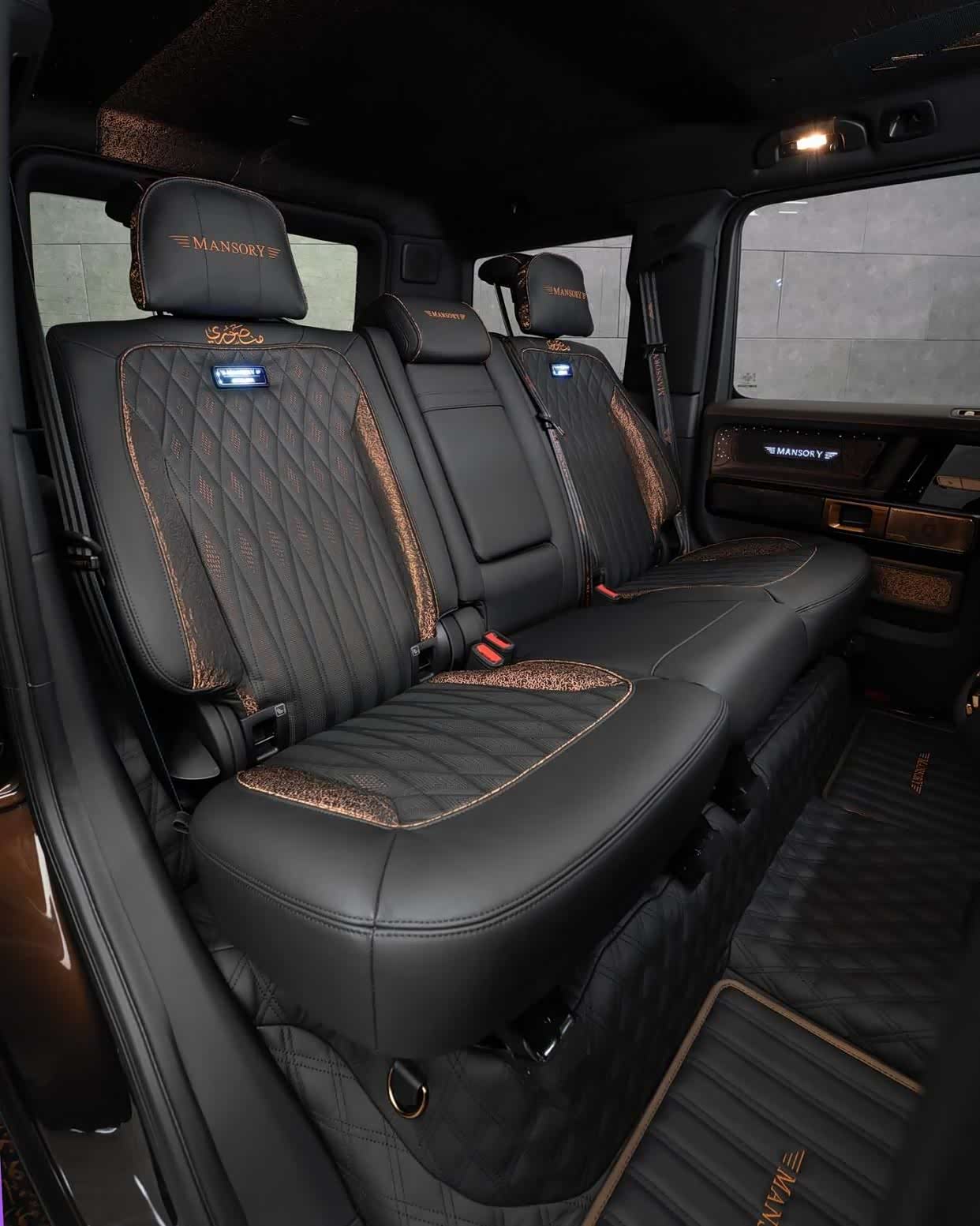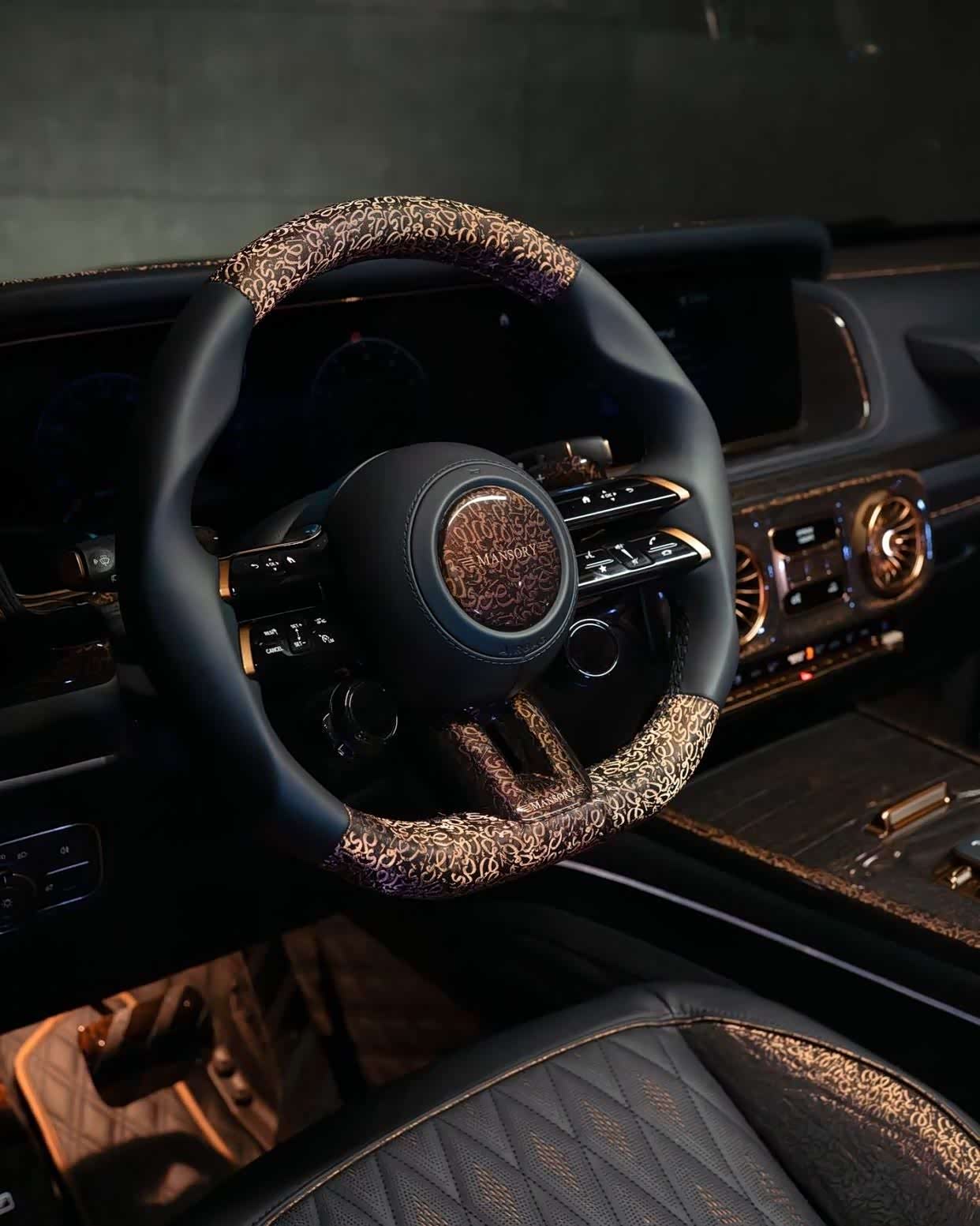 内饰方面,Mansory 巧妙地运用铜丝装饰,在光滑的黑色座舱内舞动,营造出一种魔幻的氛围。黑色皮革包裹着座椅和中控台,散发着力量感,而车门和仪表盘上浓郁的棕色皮革则营造出一种撩人的对比效果。