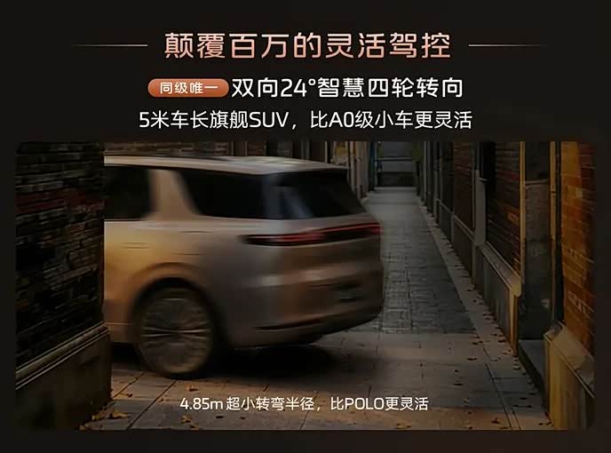 别再被“大车难开”劝退了!智己LS8全系标配双向24°智慧四轮转向,5米长的车身居然能实现4.85米的转弯半径,比A0级小车还灵活——商场螺旋车库一把过、老小区窄路掉头不蹭墙,新手司机也能秒变老司机。