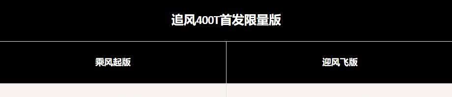车家号·0浏览·2026-03-30 13:36 · 湖北10月25日,星途品牌旗下追风车型的400T首发限量版上市。作为限量版车型,该系列提供乘风起、迎风飞在内的2个版本,售价分别为13.99万元、14.99万元,将限量发售100台。详情如下: