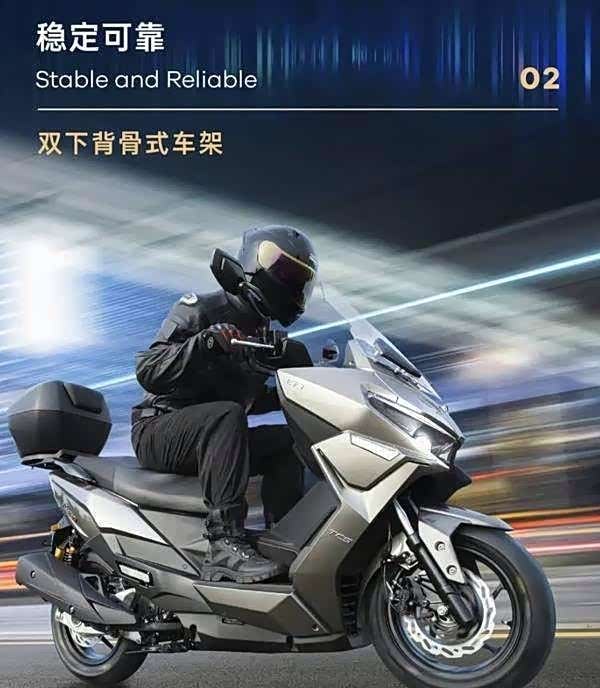 动力方面,搭载 水冷4气门发动机,性能依旧稳健有力。光阳一直以运动性见长,这台车自然也不例外。配合 强化型车架设计,整车刚性表现突出,即便是高速巡航,也能保持车身稳定,给人十足的安全感。