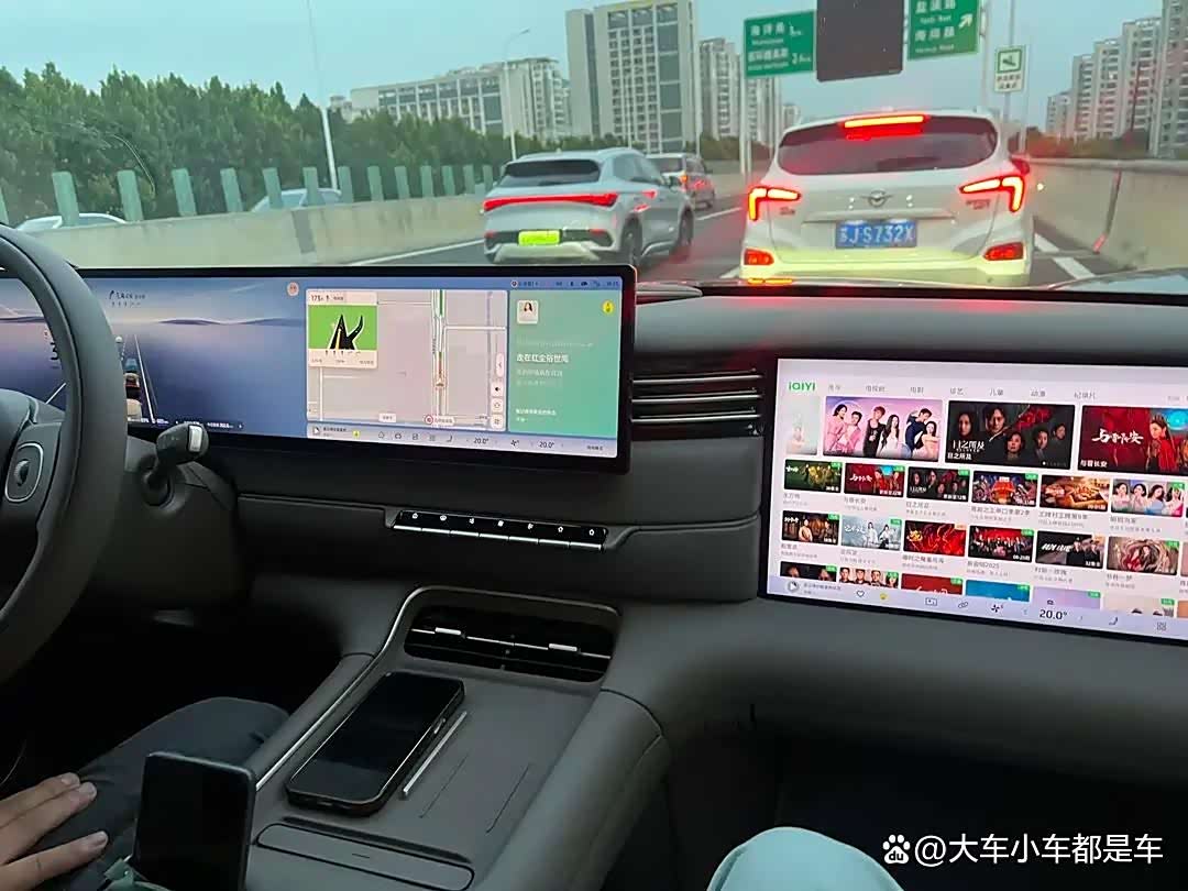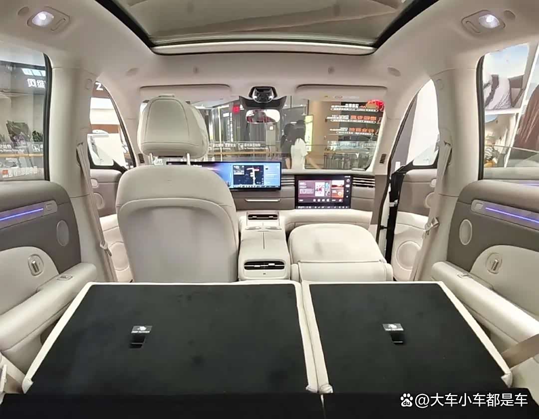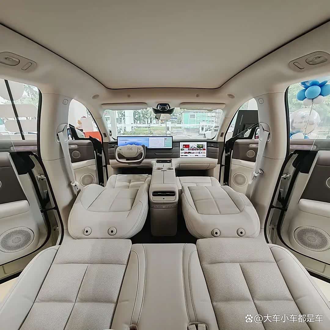 走进车内,智己LS6的内饰同样让人眼前一亮。27.1英寸5K臻彩驾舱屏与15.6英寸3K副驾沉浸娱乐屏,组成了极具科技感的智慧座舱 ,搭载高通骁龙8295芯片,配合全场景AI语音助手,操作流畅,交互体验出色。全新设计的超薄悬浮中控物理按键,不仅美观,操作起来也更加便捷。座椅采用Nappa打孔头层高级真皮材质,符合人体工学的POPO Sofa云感座椅,带来如云朵般轻盈自在的乘坐感受,前后排座椅都配备通风、加热、按摩功能,即便是长途旅行也能舒适惬意。此外,超大尺寸的全景天幕,不仅视野开阔,还配备电动遮阳帘,有效隔绝阳光。中央扶手箱下方的11L车载冰箱,控温区间在-6°C - 50°C ,为出行增添更多便利。