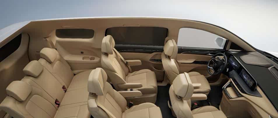 内部设计厂家也进行了公布,尽管这是陆上公务舱版本,但是内饰设计与ES版本越来越类似了。车内采用了贯穿样式的大屏设计,但目测屏幕尺寸略微偏小一些,而且也有着厚重的边框,其实也验证了该新车的价格可能会低一些。中控台依然是悬浮式的设计,座椅布局为2+2+3,肉眼可见的有着出色的车内空间。考虑到新车的价格,我们发现第2排座椅全部都是手动调节,而且也没有匹配腿托功能。