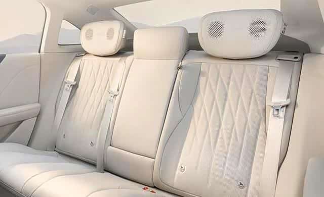 车里还配了27个扬声器,听着就很厉害,而且还有个头枕音响,说是能给驾驶员专属的导航提示音,不打扰其他乘客。