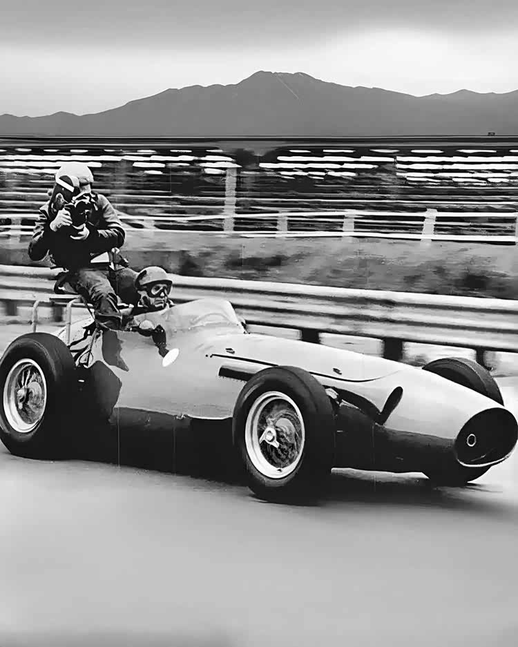 以上展示的几乎都是车手第一视角,当时的观众还想看点更新鲜刺激的角度该怎么办?那只能请出我们不怕死…哦不对,是勇敢的摄影师了。