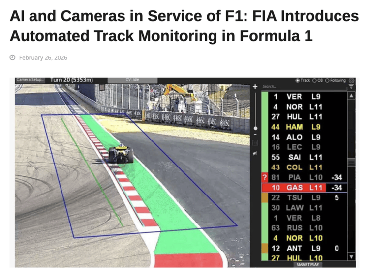 人工智能和相机为F1服务:国际汽联在一级方程式赛车中引入了自动赛道监控