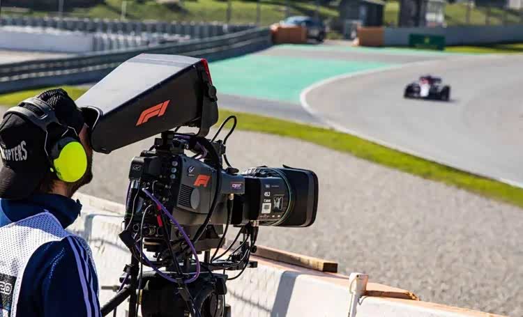 F1赛道旁的专业摄像师