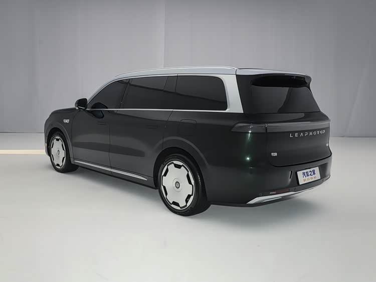 内饰采用简约的设计风格,整体造型和现在很多9系旗舰SUV非常相似,采用双层叠环绕座舱设计,提供云雾灰、丹雅棕、霁雨灰三种内饰配色,搭配大面积真皮包裹和天鹅绒顶棚材质、拼花木纹饰件点缀,豪华感十足。此外,新车还配备10.25英寸仪表、17.3英寸中控屏、60英寸AR-HUD、21.4英寸后排娱乐屏以及6英寸后排控制屏,支持多屏交互,搭载Leapmotor OS交互系统和双8797芯片,科技感十足。