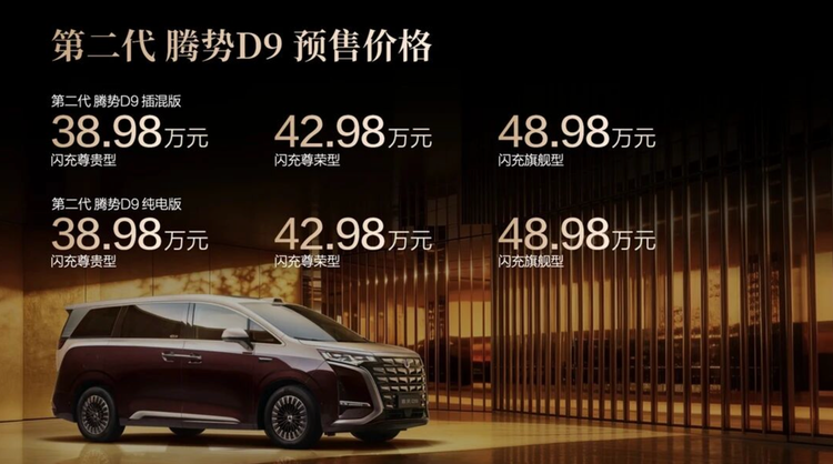不过随着越来越多竞争对手的出现,比如岚图梦想家、魏牌高山、别克GL8插混等,一定程度上抢占了其市场份额,让这位“MPV销冠”受到了冲击。时隔近4年,带着二代刀片电池+闪充技术的第二代腾势D9终于来了!能否重回销量巅峰?成为业内关注的焦点。