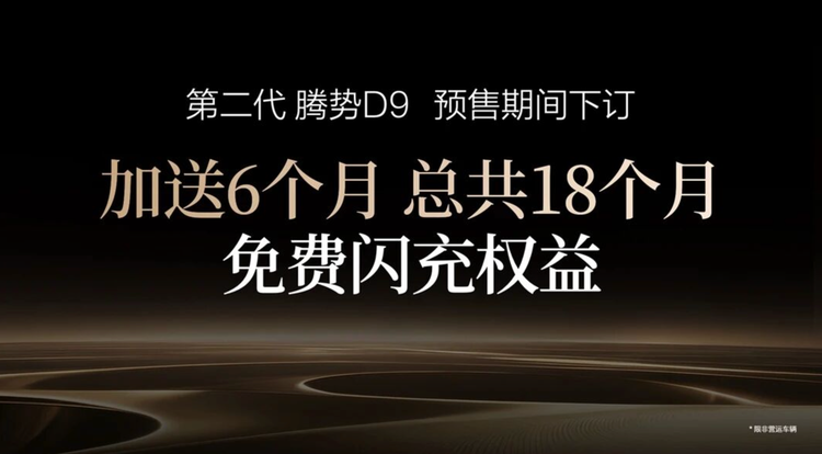 日前,第二代腾势D9开启预售,共推出6款车型,预售价38.98-48.98万元,依旧提供DM-i插混以及EV纯电两种可选,而且两个版本预售价格保持一致。在购车政策方面,新车预计4月正式到店,预售期间下订,加送6个月总共18个月的免费闪充权益。