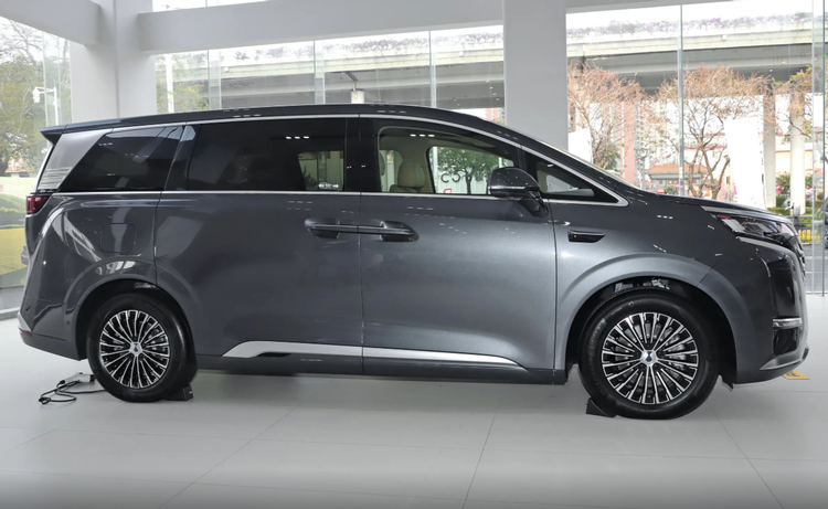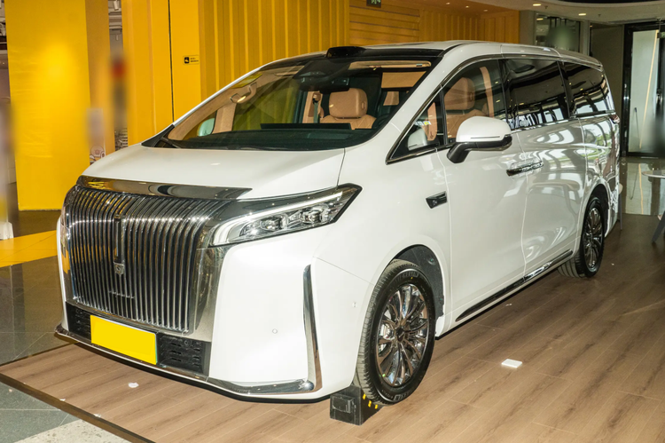 从外观来看,两款车都遵循着MPV大气稳重的基调,但细节上有所不同。腾势D9延续了其家族式的势能美学,前脸采用大尺寸的盾形格栅,内部为L形镀铬饰条,视觉冲击力很强,整体线条偏向直瀑式,强调一种沉稳与体面感,车尾的贯穿式尾灯辨识度很高。