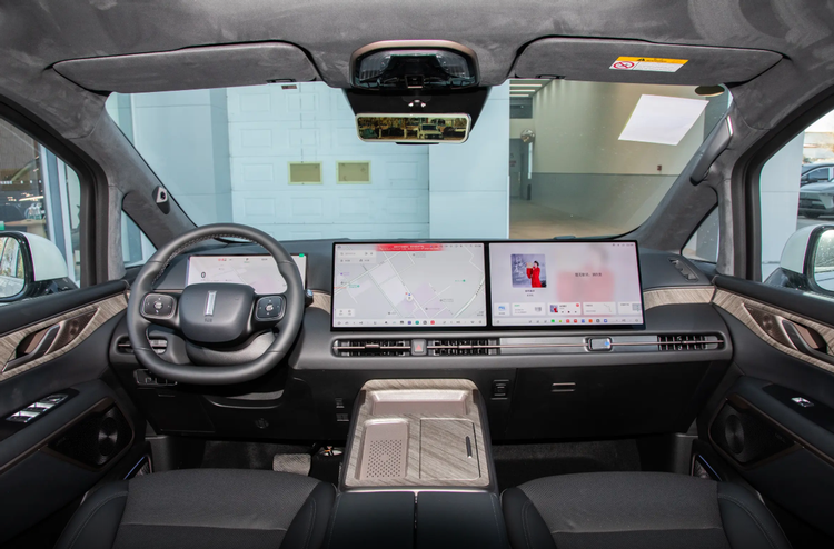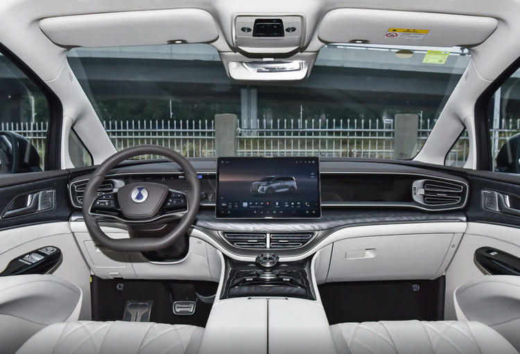 内饰方面,两者的侧重点也有所不同。腾势D9的内饰采用了经典的环抱式设计,大面积软质材料包裹,营造出一种可以长期使用的低调豪华,其双屏联动和水晶电子挡把等细节,传递出一种成熟、精致的氛围。