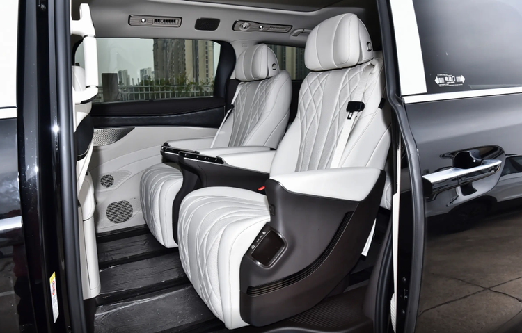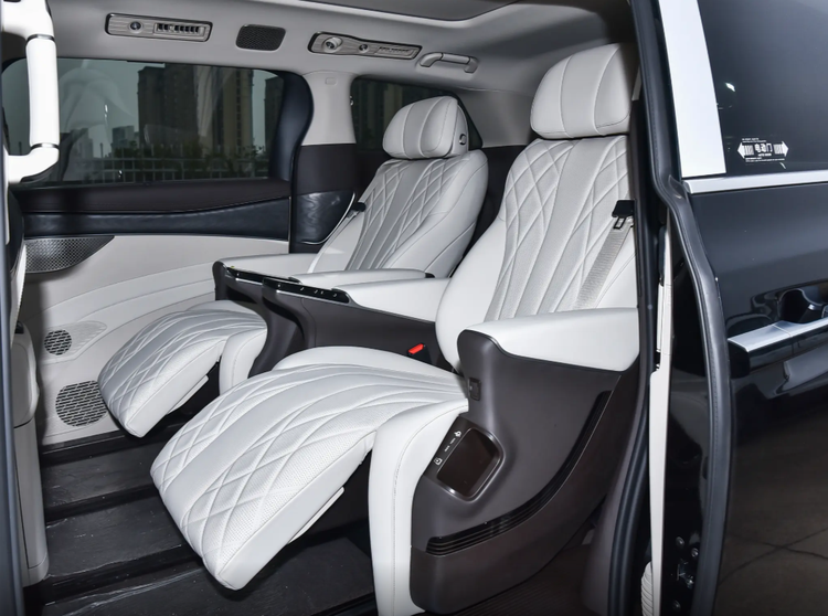 配置层面,两款车都展现了国产豪华MPV应有的实力,但侧重点和取舍不同。腾势D9 DM 2025款两驱尊航型作为入门版本,为了拉低门槛,做了一些取舍,比如取消了前排座椅的加热、通风和按摩功能,也减少了方向盘加热等舒适性配置。但它依然保留了二排的零重力座椅、二排座椅加热通风按摩以及冰箱等舒适配置,对驾驶者的照顾有所简化。