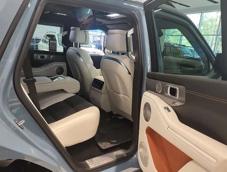 内饰的豪华程度完全不输城市豪华SUV,搭载12.3英寸2K仪表屏+15.6英寸2.5K中控屏的组合,内置Coffee OS智慧座舱,后排还有17.3英寸3K吸顶娱乐屏和7英寸扶手屏。前排座椅支持20向电动调节,后排能141°无极调节,全车都有通风、加热和10点位按摩功能。前排座椅还能180°放平,实现大床模式。还有5.4L的车载冰箱,能制冷到-6℃也能加热到50℃,夏天喝冰饮、冬天喝热水都能满足,可以说,即便是主打越野的车型,也能有冰箱彩电大沙发的体验感。
