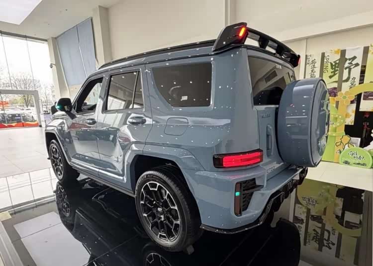 车尾搭载了小书包,这也是硬派SUV的标志性元素之一。尾灯组采用了矩形设计,下方区域跟车头雾灯区域采用了类似的设计语言。扩散器造型整体进行了熏黑处理,最下方还有银色护板,彰显不俗的越野能力。
