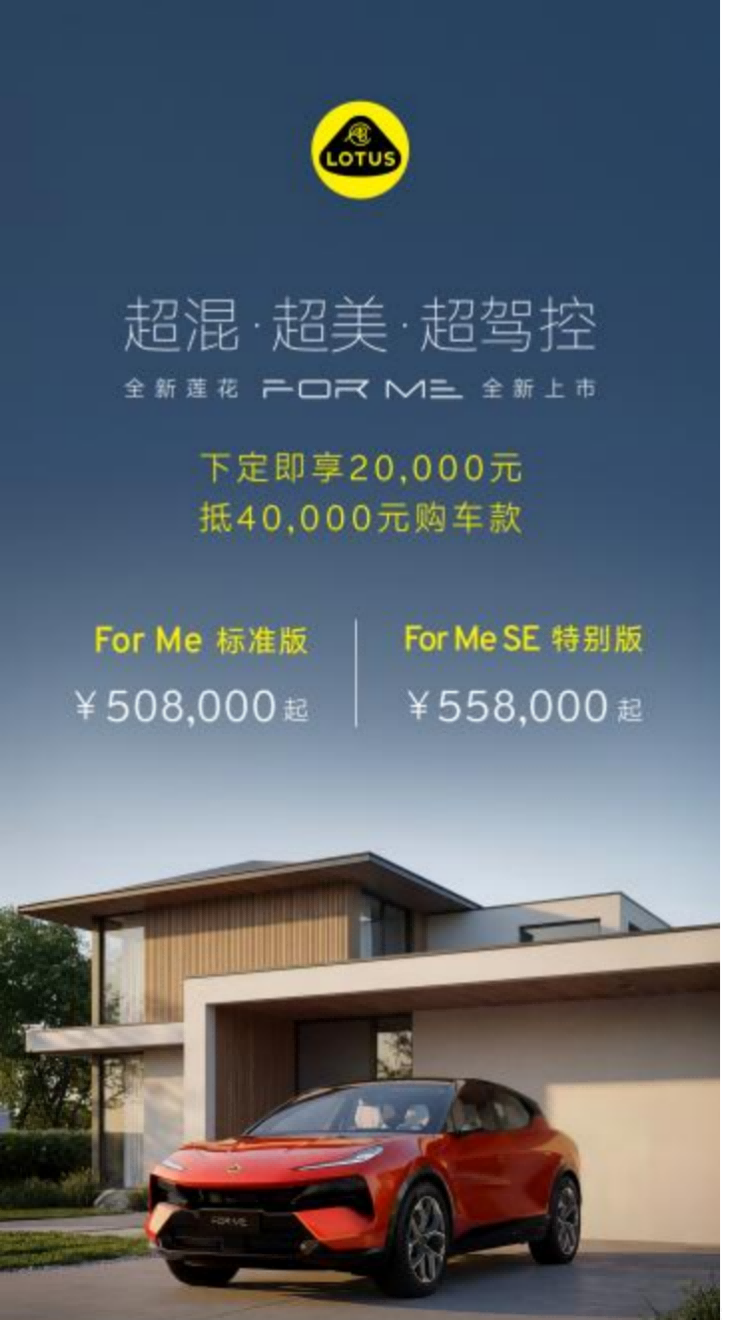 在电动化与多场景出行需求并行演进的当下,莲花For Me以超级混动、品牌驾控基因与更完整的空间舒适体验,为高性能SUV用户提供了一种新的选择。