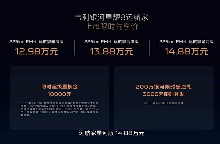 225km纯电续航+城市NOA,星耀8远航家上市12.98万起