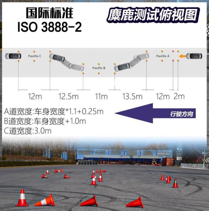 通俗地说,麋鹿测试的核心作用,是模拟日常驾驶中突然遭遇障碍物(如横穿道路的麋鹿、行人或遗落物)时,车辆能否顺利完成避让,从而评估其安全操控性能。目前,国际和国内对此都有明确的测试规范。