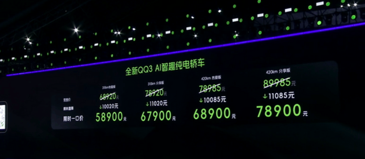 3月30日,全新奇瑞 QQ3 EV(参数|询价)现已正式上市,共推出4款车型,限时一口价5.89万-7.89万元。作为奇瑞品牌全新打造的纯电动小车,全新奇瑞QQ3 EV提供310公里、420公里(CLTC工况)的纯电续航选项,支持付费选装猎鹰500辅助驾驶系统。
