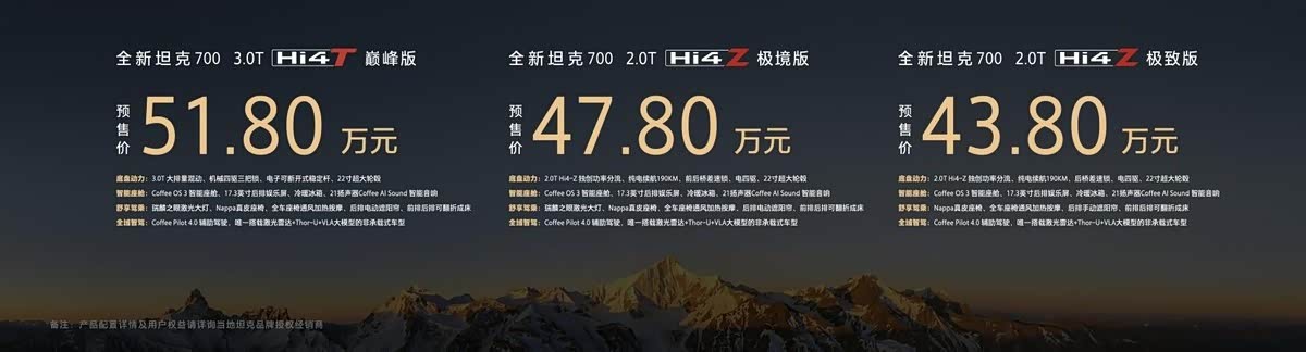 全新坦克700预售价43.80万起 开创全域豪华新品类