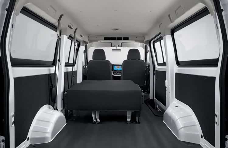内饰方面,采用乘用环抱式座舱,搭配三幅方向盘和怀挡设计,智能化方面,搭载9寸大屏幕,具备手机互联和远程车控等功能。提供2/5/6/7座灵活多变的座椅布局,新车能实现在纯货用与客货之间自由切换。