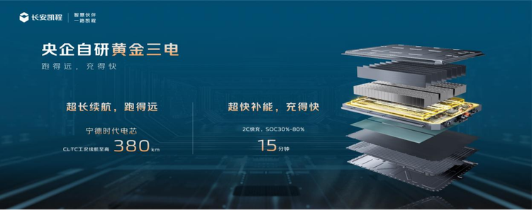 首先在三电系统层面,新一代长安睿行EV强调的是协同效率。其搭载的“黄金三电”体系,核心在于电池、电机、电控的一体化匹配与标定。电池方面,新车采用“金钟罩”电池,并匹配宁德时代电芯,在耐久性与稳定性上更贴近商用车高频使用需求。CLTC工况下最高380公里的续航,对于以短途多频为主的城配运输而言,基本可以覆盖一天的工作半径,减少中途补能的依赖。