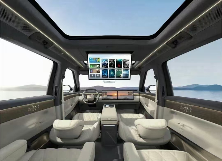 ID.ERA 9X内饰有多豪华,我就不多说了,反正跟其它9系相比,只多不会少。原因就是我前面说的,大众造车不是单纯的堆料,不是反正比你多的肤浅逻辑。以下图展示的九屏联动为例,智能抬头显示屏不稀奇,但它的这块抬显信息不仅可以跟着眼球调整位置,而且还能联动后视镜跟着一起调整。这不是在炫技,而是出于各个视线角度都安全的底线思维。
