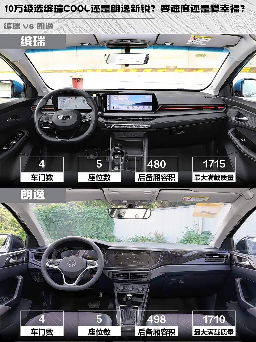 要驾驶激情和智能配置选缤瑞COOL,1.5T动力+全景影像+远程控制真的香;追求沉稳驾驶和省心养护就选朗逸新锐,德系底盘+大空间适合家用。两款都是10万级良心车,关键看你要速度与激情还是稳稳的幸福~