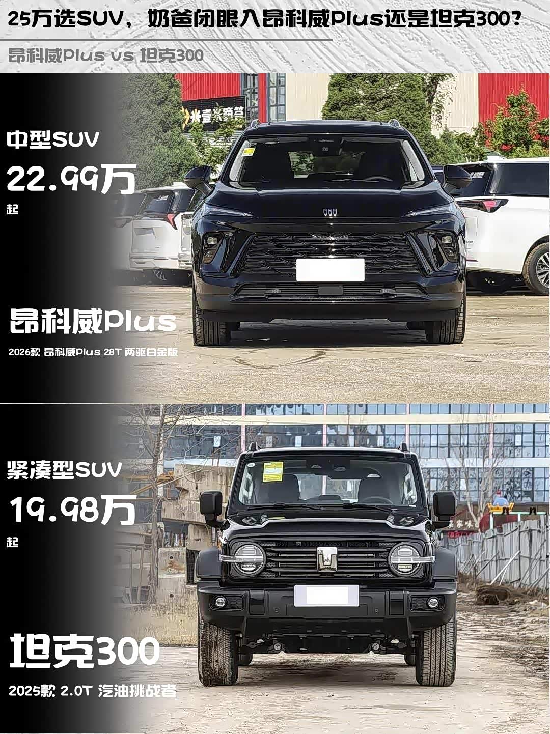 25万选SUV,奶爸闭眼入昂科威Plus还是坦克300?