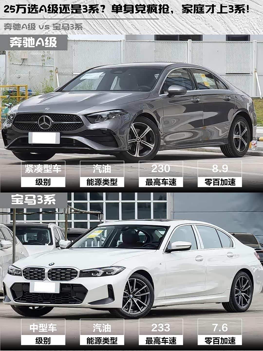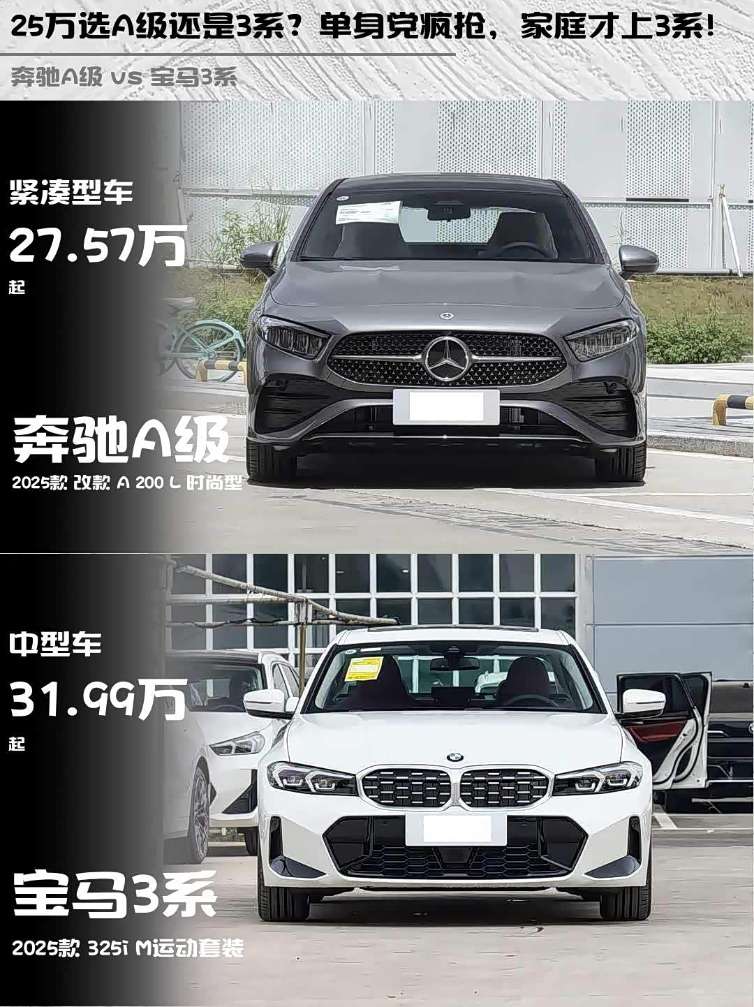奔驰A级和 宝马3系(参数|询价)怎么选?25万预算纠结党看过来!🔥