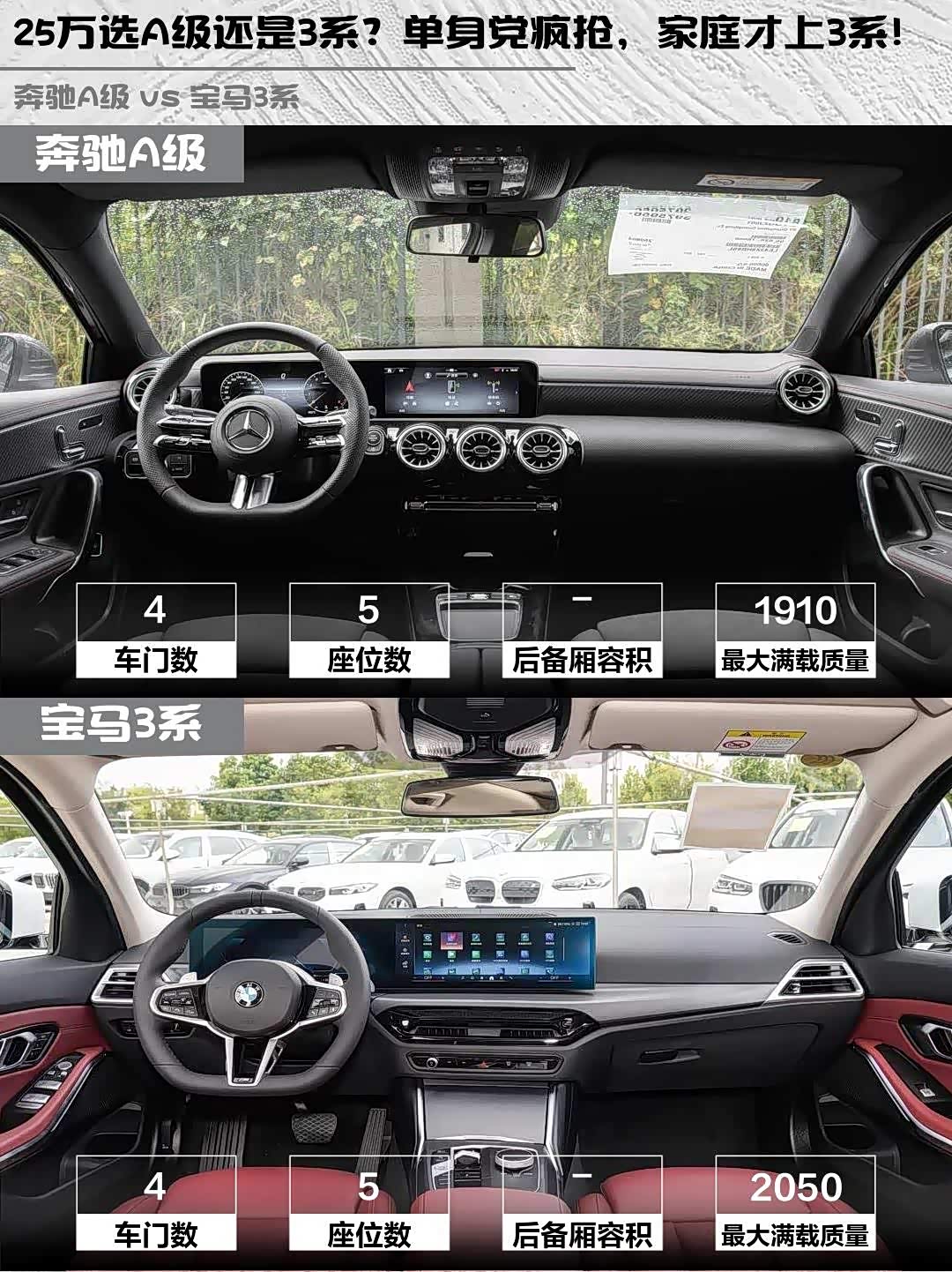 要豪华氛围+省油选A级,要驾驶乐趣+空间选3系。单身贵族或小情侣A级够用,经常全家出行建议上3系长轴。对了,3系现在停售在清库存,下手要快!