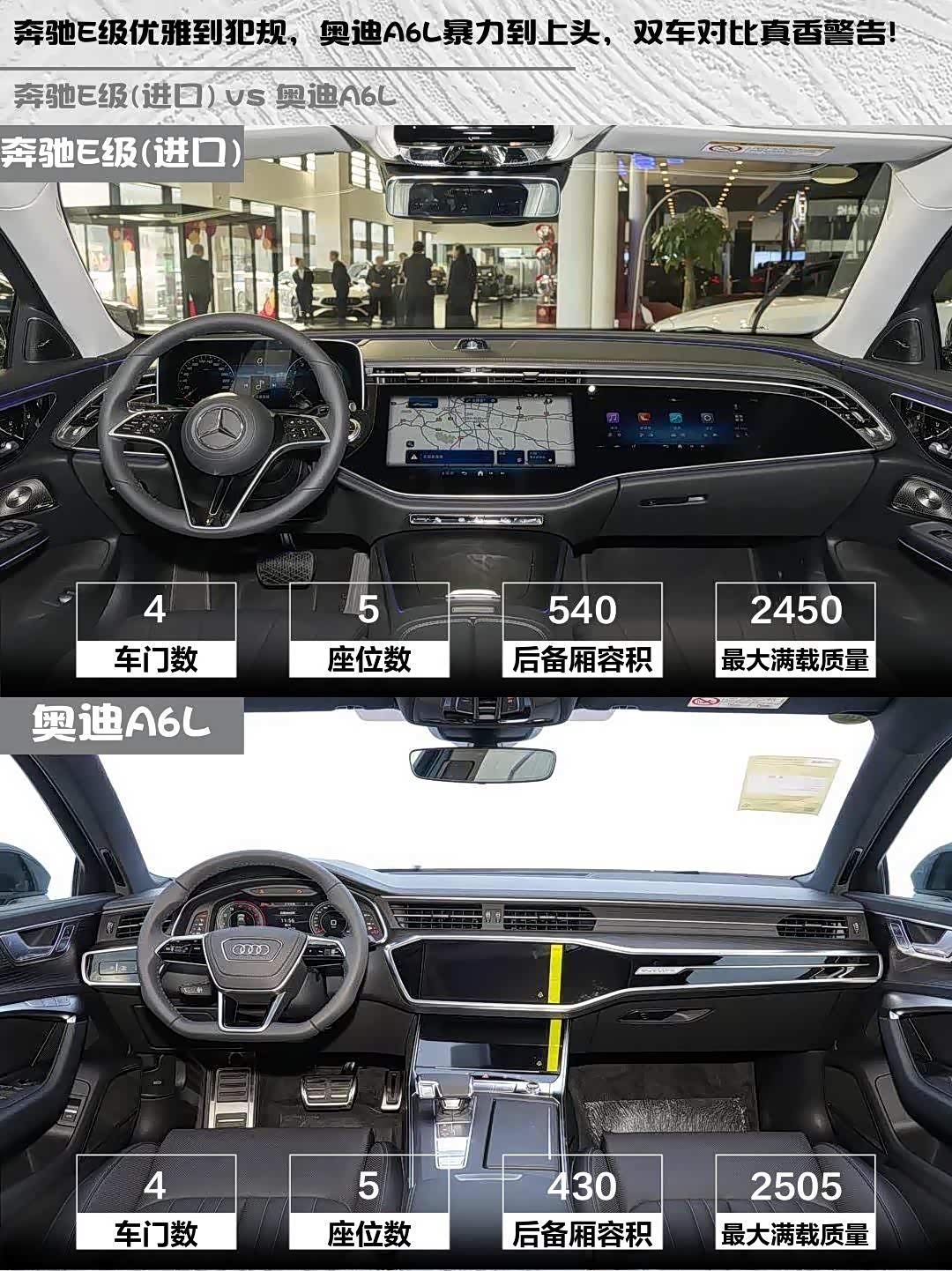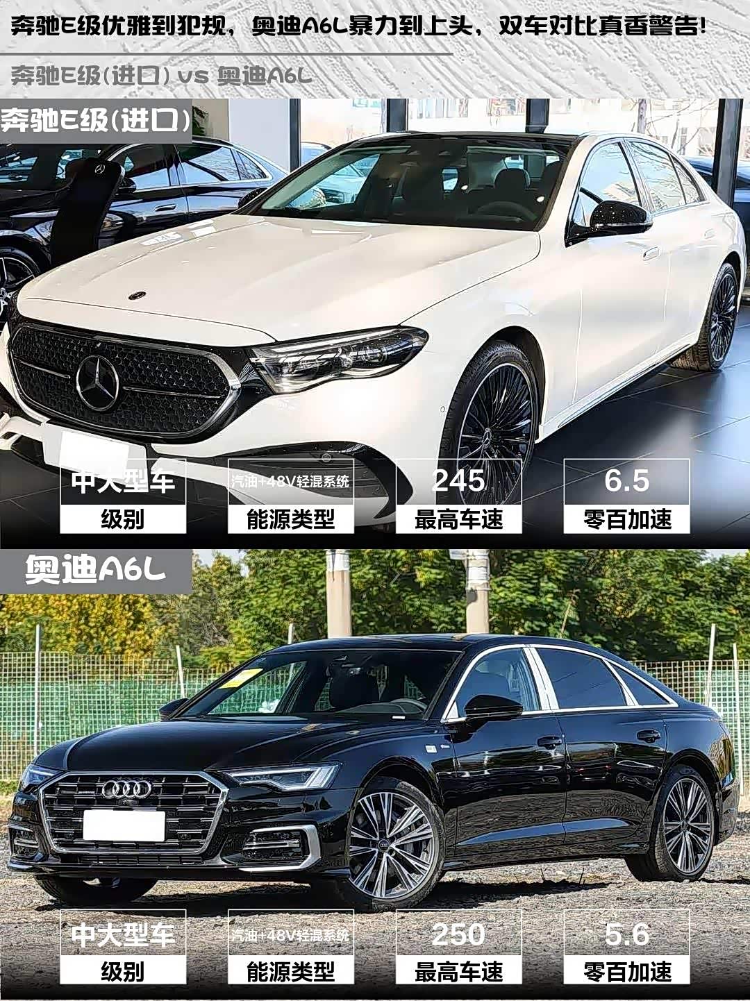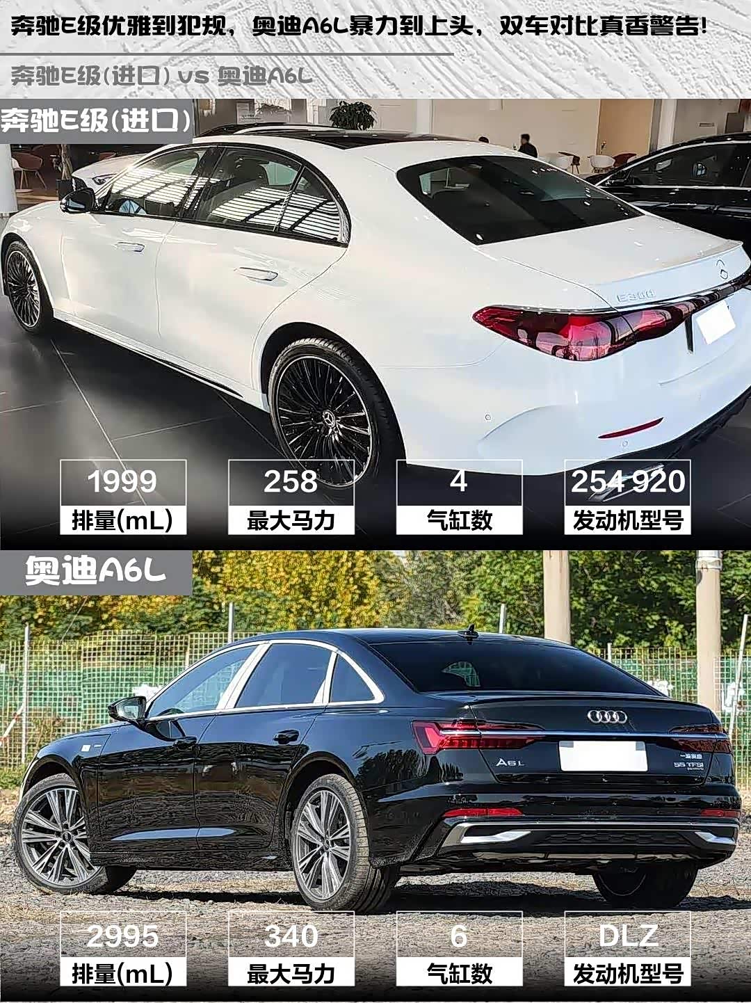 奔驰E级优雅到犯规,奥迪A6L暴力到上头,双车对比真香警告!