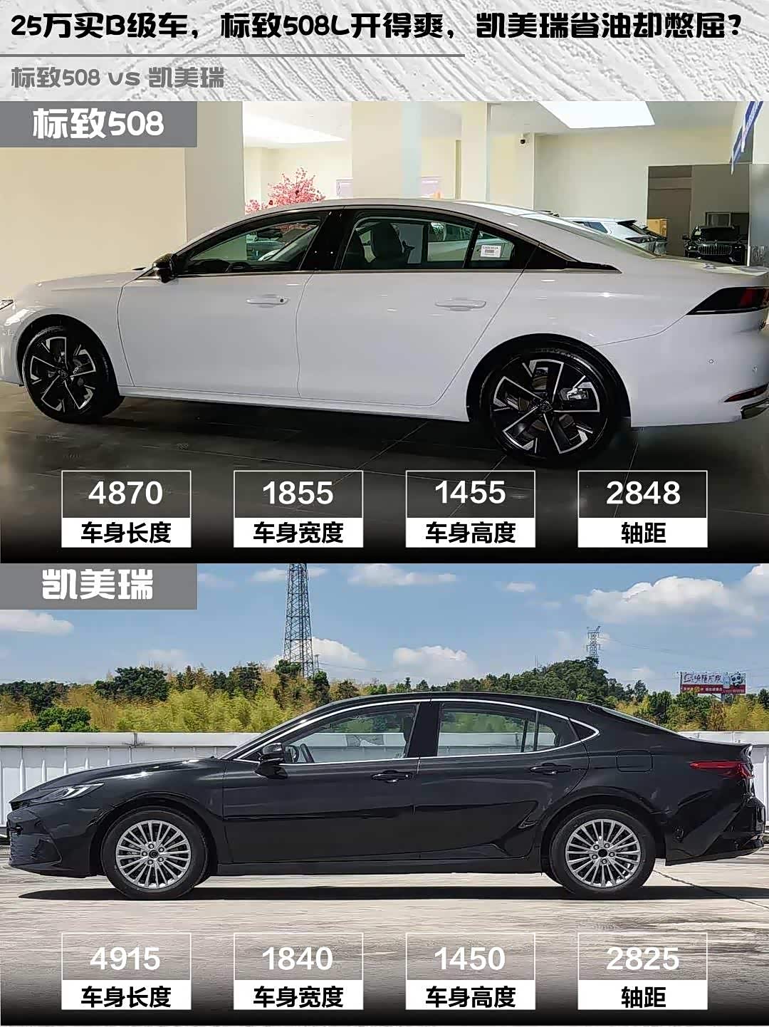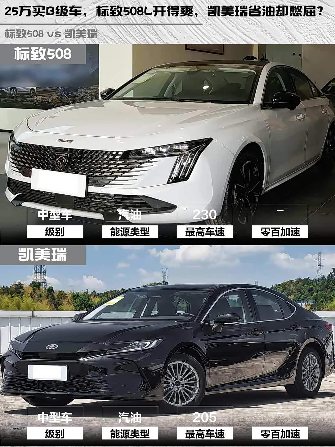 法式浪漫 vs 日系务实!25万预算买B级车, 标致508(参数|询价)L和凯美瑞谁更香?🤔