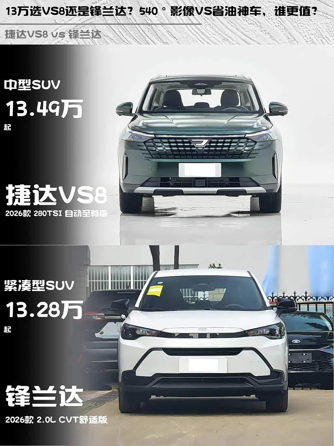 13万选VS8还是锋兰达?540°影像VS省油神车,谁更值?