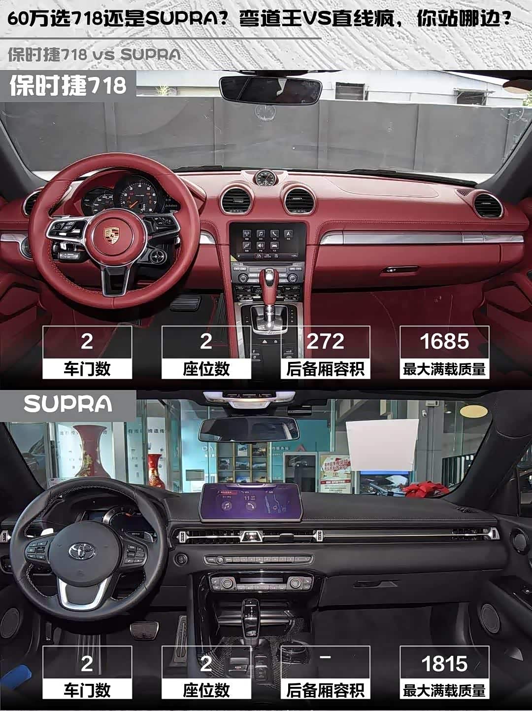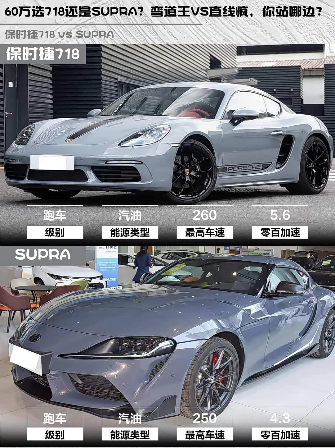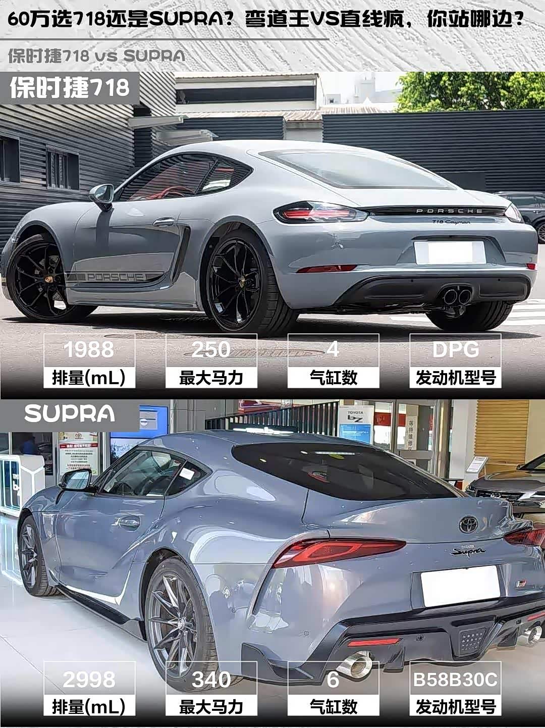 最近后台总有人问:预算60多万,想买台纯粹驾驶机器,718和SUPRA怎么选?今天就来场硬核对比!