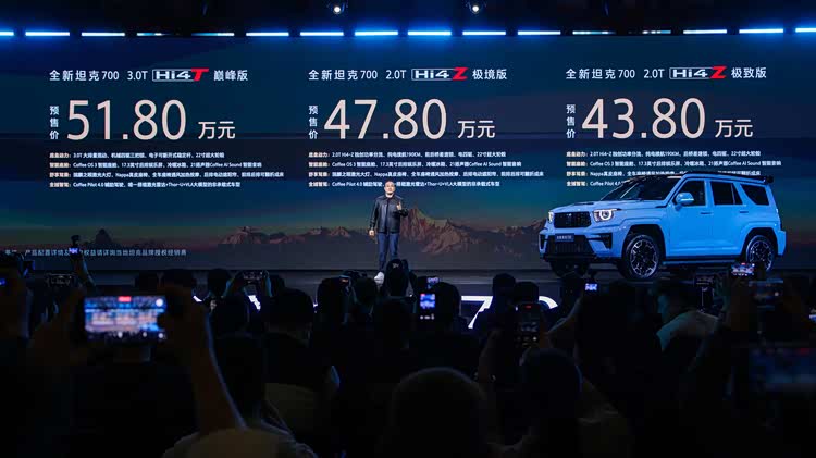 全新坦克700提供3.0T Hi4-T、2.0T Hi4-Z两大动力版本共3款车型,官方预售价格区间为43.80万元至51.80万元。坦克还同步推出了一系列专属尊享权益。全新坦克700以中国传统文化中的“麒麟”为设计灵感,风格力图贴近中国消费者喜闻乐见的效果。