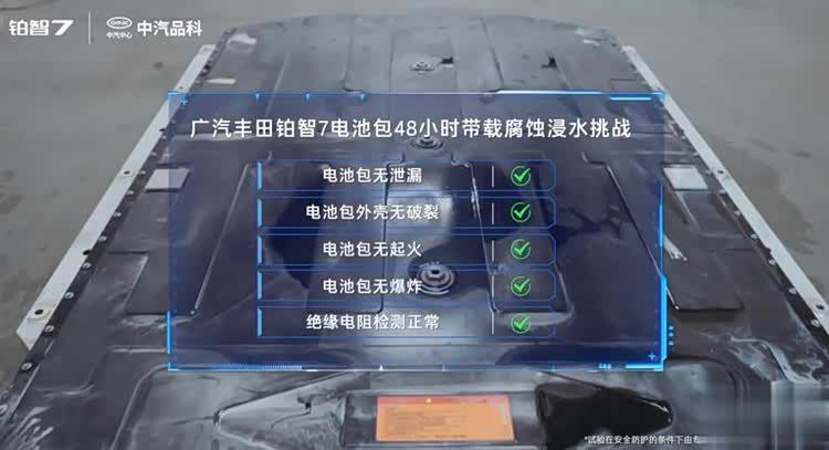 在上市之前,中汽中心对铂智7实施了一系列堪称“地狱级”的极限安全与耐久测试,甚至包括“超高速碰撞、大卡车前后夹击追撞、翻车坠崖”等等极端事故场景,受损电芯是否能保证不起火、不爆炸。铂智7用多种事故场景和极端场景下 “电池无泄漏、无起火,整车结构完整、功能正常”的硬核表现,回应了消费者对电动汽车最深层的安全与品质焦虑。而且,广汽丰田在工程端对消费者承诺,电车自燃由广汽丰田兜底。