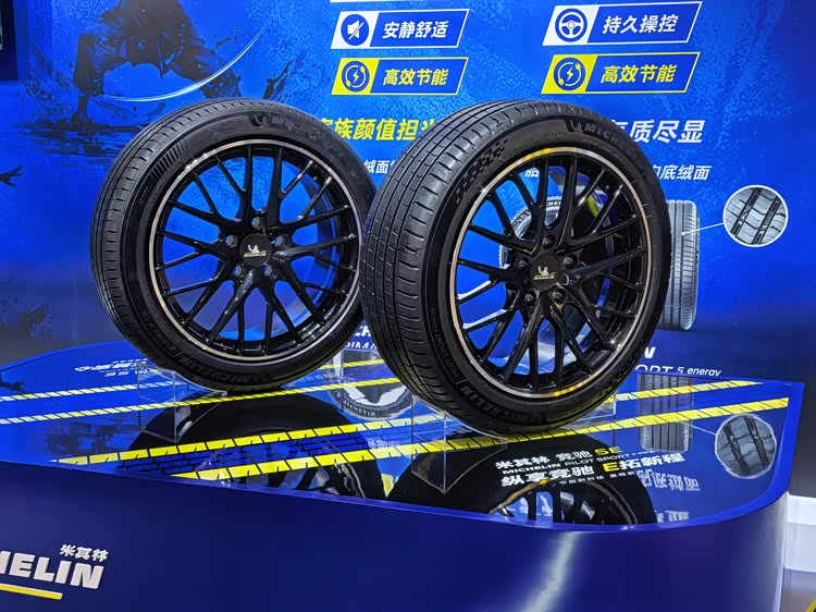 一进场就被米其林蓝金配色的展台吸引,必比登人偶站在中间,辨识度很高。这次新品直接把节能和性能做到了一起,双胎面技术加持,纯电车型续航能多跑38公里,燃油车一箱油多跑18公里,对经常跑长途的人来说,这点提升很实在。