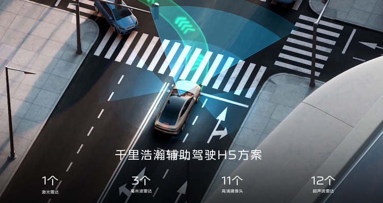智能驾驶方面,千里浩瀚H5方案带1颗激光雷达,27颗感知硬件,不依赖高精地图就能实现全场景城市NOA。无论是繁华都市的复杂环岛、豁口掉头,还是小镇老街的狭窄巷弄,甚至是刚刚通车的新路,系统都能识别并流畅通行。针对中国道路的特点,系统还提炼了22项弱势驾驶场景进行防御性驾驶优化。