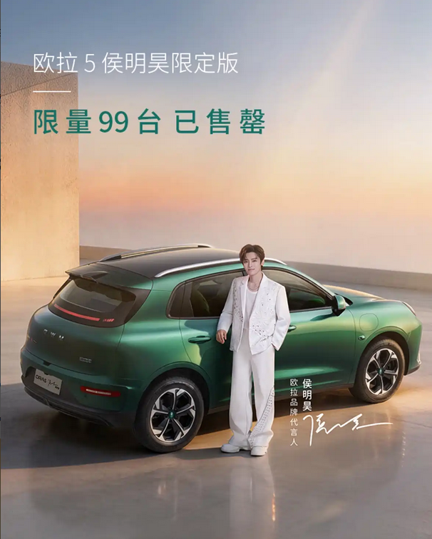 日前,我们从长城汽车官方获悉, 欧拉5(参数|询价)侯明昊限定版正式推出,这一版本以限量99台的方式进入市场。从官方信息来看,该车在发布后已完成全部售出,体现出限定版本在用户圈层中的一定关注度。相比常规车型,这类限量版本更强调差异化配置与身份标识,同时在销售节奏上也采用小规模快速释放的策略。此外,围绕交付环节,官方释放的信息显示,部分用户存在由艺人参与交车的可能性,这类交付形式在当前新车营销体系中属于情绪价值延伸的一部分。