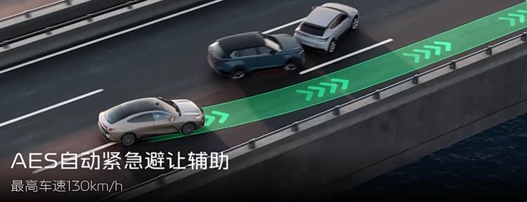 除了爆胎稳控,AES紧急避让辅助系统也进一步升级。最高支持130km/h速度下的紧急避让,针对静止车辆、低速车辆、行人、非机动车及消失前车等场景都能应对。更值得注意的是,后期通过OTA升级,这套系统可实现连续两次避让,为行车安全提供了双重冗余。在高速路上,如果系统检测到后方有快速来车存在追尾风险,还会主动变道至安全车道,提前规避危险。