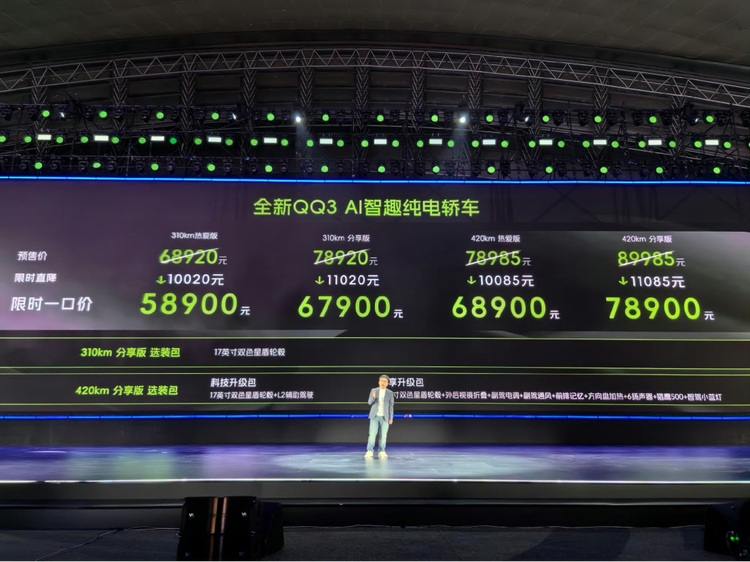 第三,入门版智能配置缩水。QQ3只有420分享版才支持选装猎鹰500辅助驾驶系统,低配版本连选装的机会都没有。这意味着,如果你想体验高速NOA和自动泊车,至少要买到7.89万元的顶配车型。