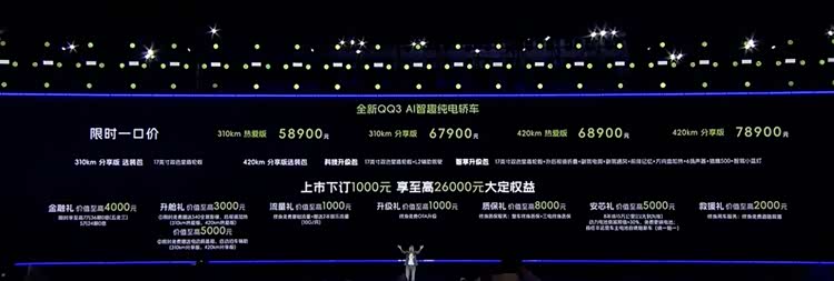 近日,奇瑞QQ3EV车型正式上市,该车由此前QQ家族一直坚持的微型车定位升级到了小型车,车身长度接近了4.2米,轴距达到了2.7米,毫无疑问是历史上最大的QQ,也进入了全新的市场,将和吉利星愿等车型展开竞争。